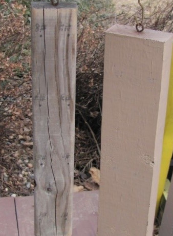 In the left picture, the preservative-treated pine samples were protected with the new technology and had been exposed outdoors as wood decking. The decking kit was placed four inches above the ground. After about five-year outdoor exposure, it had no crack and no mold and were intact.